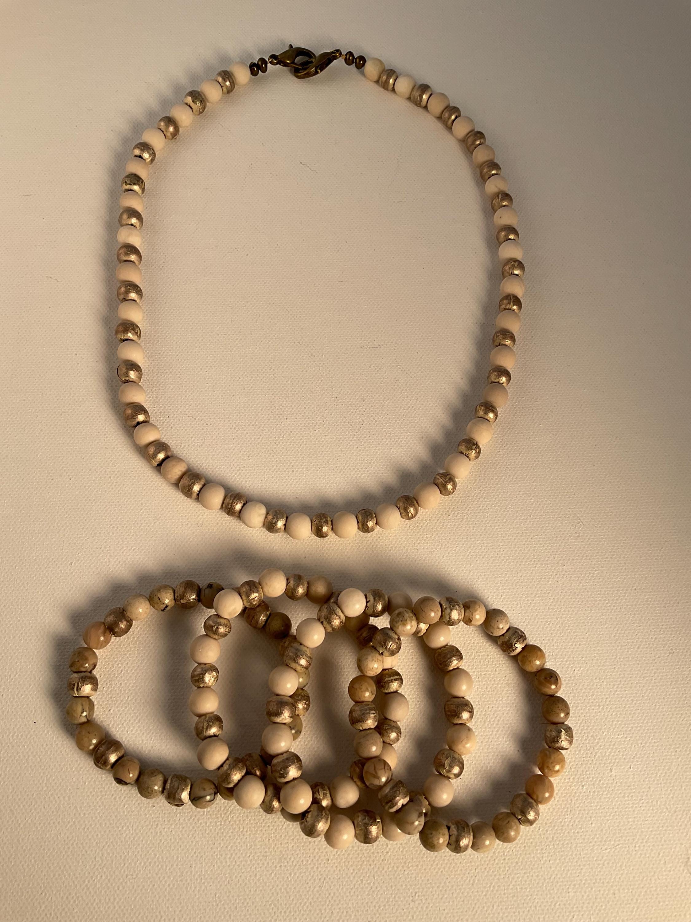 The Fossil Coral and Florentine brass give this necklace an overall softness in appearance as well in texture. It will provide a subtle statement to whatever the occasion. It can be shortened if a choker style is desired. The necklace shown is 21 inches. There are bracelets also available for purchase. Please message if you desire alterations.