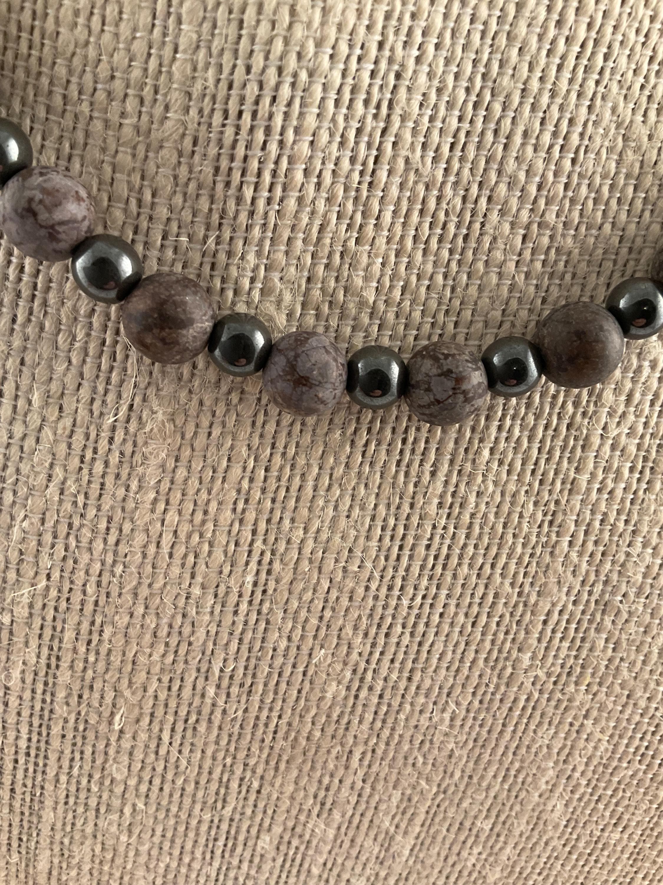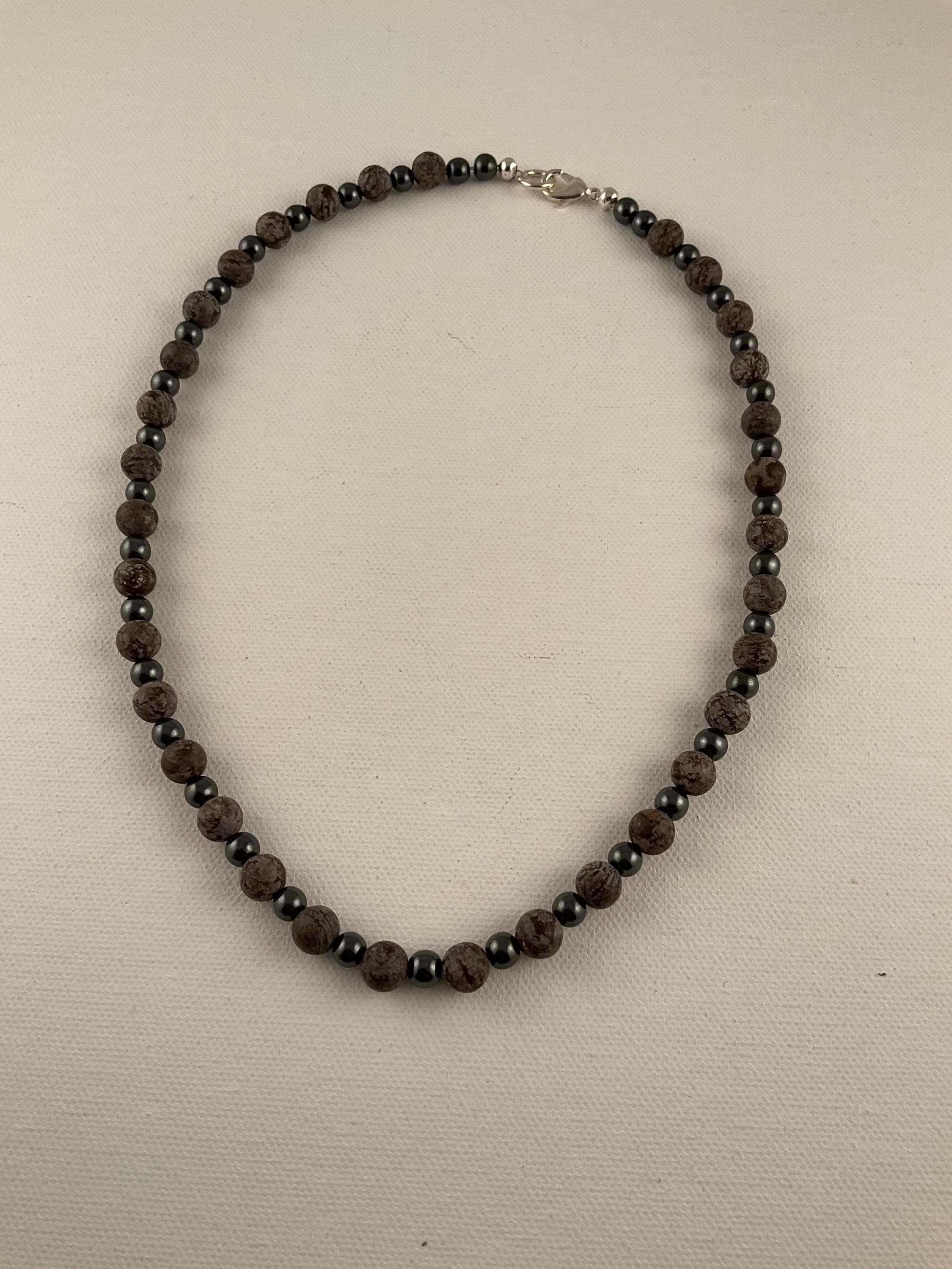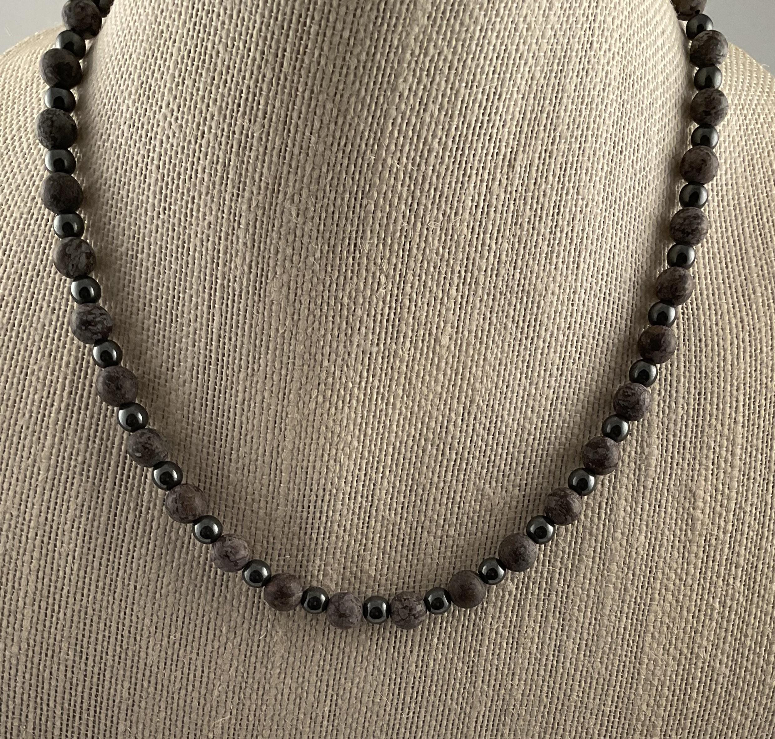 Simple subtle statement for any occasion. The matte finish on the obsidian bead is contrasted beautifully by the shiny brownish hematite. The necklace pops with the contrast! This necklace measures 19 1/2 inches and can be shortened or lengthened upon request.