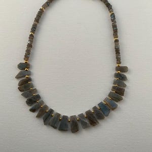 A combination of different textures and tones provides this necklace with a very dynamic look. The matte jasper has varying hues of red and burgundy The copper, burgundy wood disks and the copper tone of the raku beads accents the matte red jasper and pulls the necklace into a pleasing design. The necklace is closed by a copper toggle.